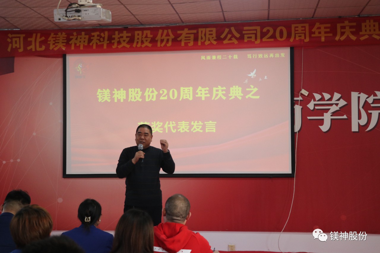 与庆典表彰大会一同举办的还有二十周年庆相关征文活动颁奖典礼。海南公司员工李红娇的作品“献给镁神二十周年”拔得头筹。