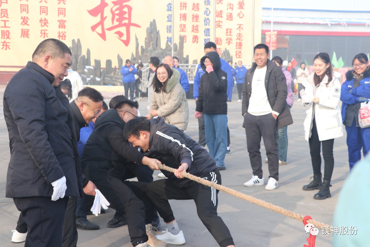 在拔河比赛中,各队成员齐心协力,奋力向前,展现了镁神人团结拼搏的精神风貌。