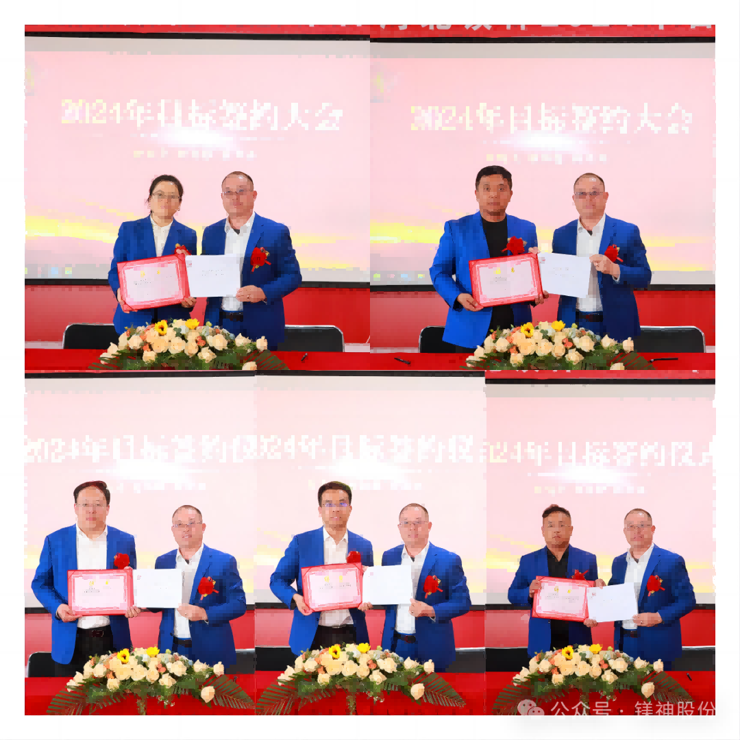 伴随着庄重而激动人心的签约仪式,我们见证了每一份目标责任书的签订,从非洲公司总经理赵振凯、到镁王公司总经理毕立亨、到冶金镁业总经理赵世杰、再到海南公司总经理贾庆双,以及镁泰公司总经理赵朝荣、财务中心总监荣红梅、运营中心总监杜玉玲、项目管理中心总监翟立强和研发中心总监白雪梅,一纸承诺,签下的不只是一份目标责任书,而是沉甸甸的责任,更是对2024年度目标达成的坚定信心和执着追求。
