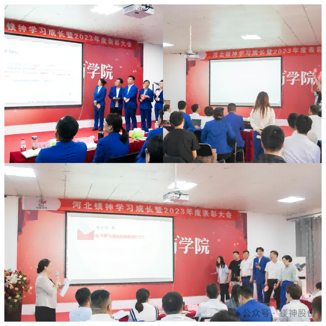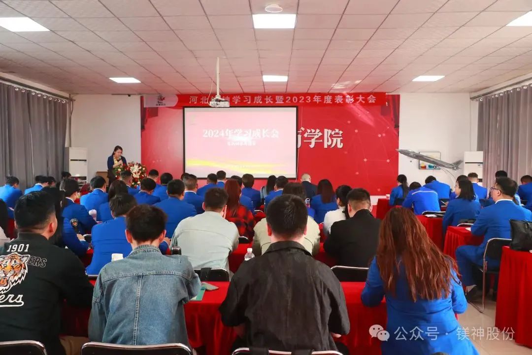 2024年4月17日,伴随着全体员工铿锵有力的宣誓声和气势磅礴的歌声,河北镁神学习成长暨2023年表彰大会拉开了帷幕……