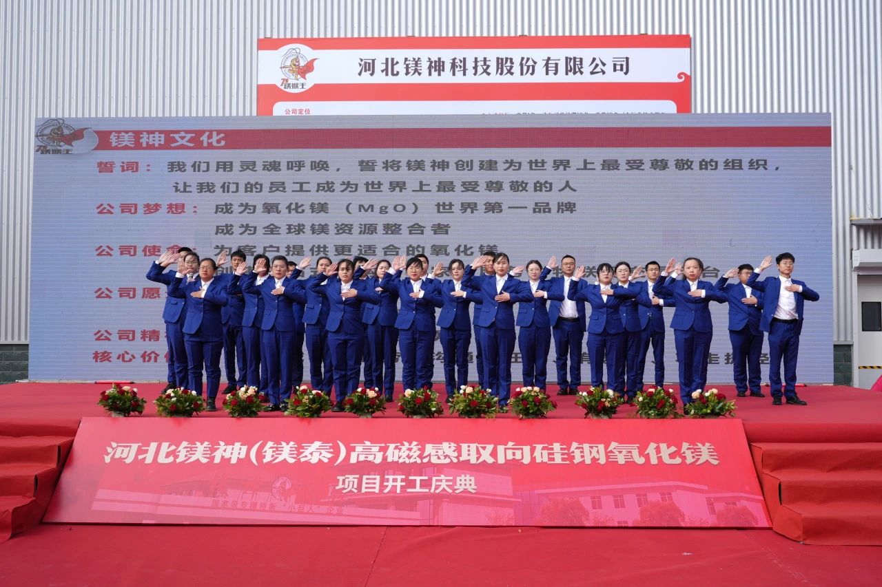 2024年10月19日,河北镁神科技股份有限公司(以下简称“镁神科技”)在广宗工厂隆重举行“河北镁神(镁泰)高磁感取向硅钢氧化镁项目开工仪式”,并于当天下午举办了技术交流会。此次活动汇聚了来自政府、行业协会、科研机构及企业的众多领导、专家和合作伙伴的热情参与,共同见证中国硅钢级氧化镁历史上一里程碑时刻。
