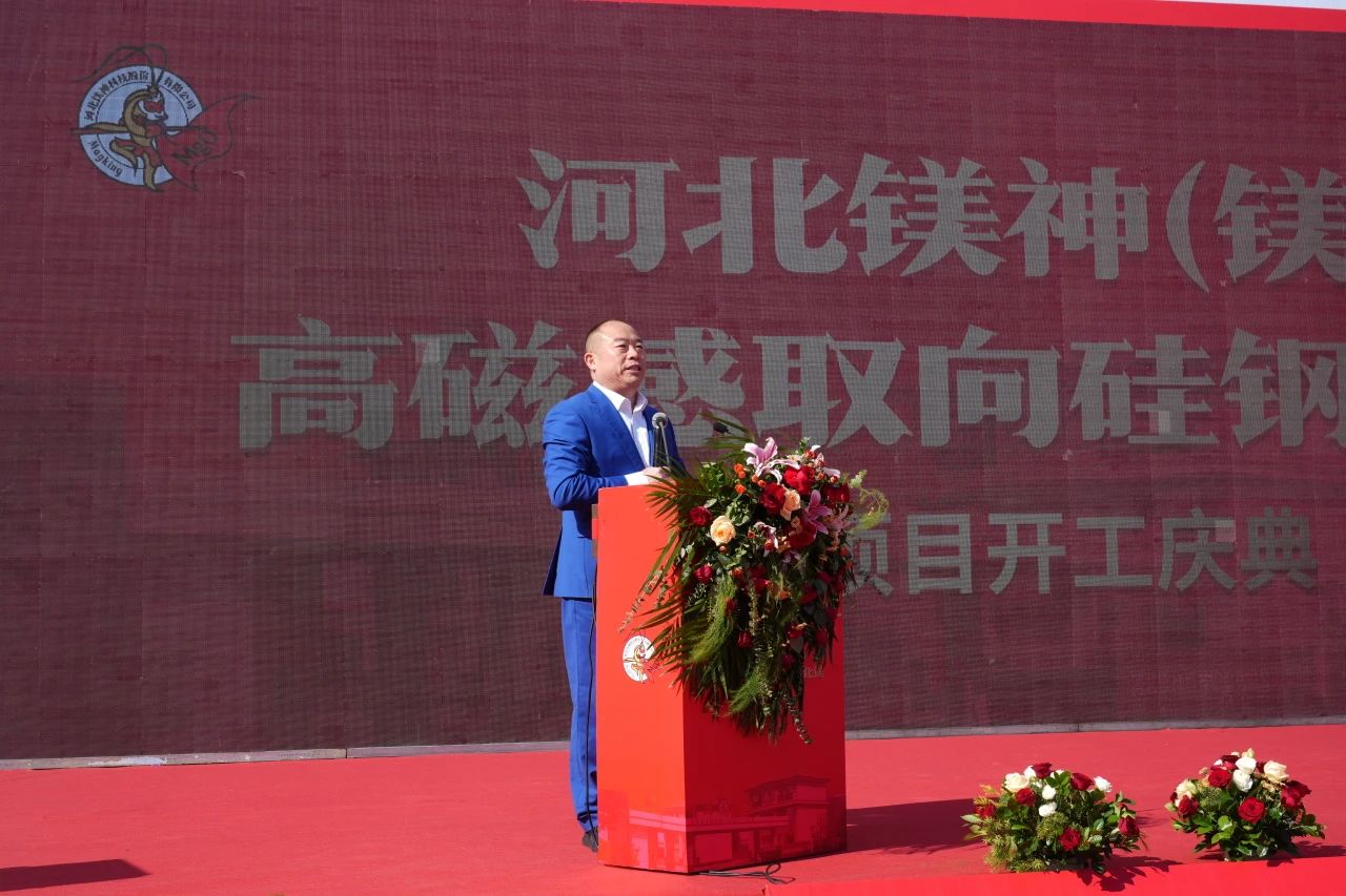 孙文董事长首先对远道而来的各位领导、专家、合作伙伴和朋友们表示由衷的感谢。他提到,这一项目的顺利启动,离不开社会各界长期以来对镁神科技的支持与厚爱。在致辞中,他回顾了公司21年来通过专注于氧化镁行业的深耕与应用研发,从传统氧化镁产品逐步向高端化、精细化转型升级的发展历程。并分享了自己站在中国镁盐行业的前沿对硅钢氧化镁的见解。最后,孙文董事长再次对与会嘉宾的支持表示感谢!并坚信在镁神的战友们共同努力下,未来10年一定能实现世界级镁质新材料定制专家,世界级应用研发领跑者,全球镁资源整合者,世界级隐形冠军缔造者的战略目标。为中国一带一路添彩,为中国制造争光,为民族复兴增砖添瓦,为中国镁行业发展贡献我们的一份力量。
