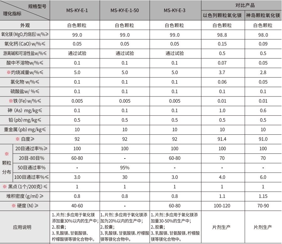 产品描述:本品为白色颗粒,无臭、无味、无毒,在空气中容易吸收水分和二氧化碳,溶于酸,几乎不溶于水应用行业:广泛应用于食品、保健品、医药行业片剂、胶囊剂、甘氨酸镁、柠檬酸镁等的生产加工